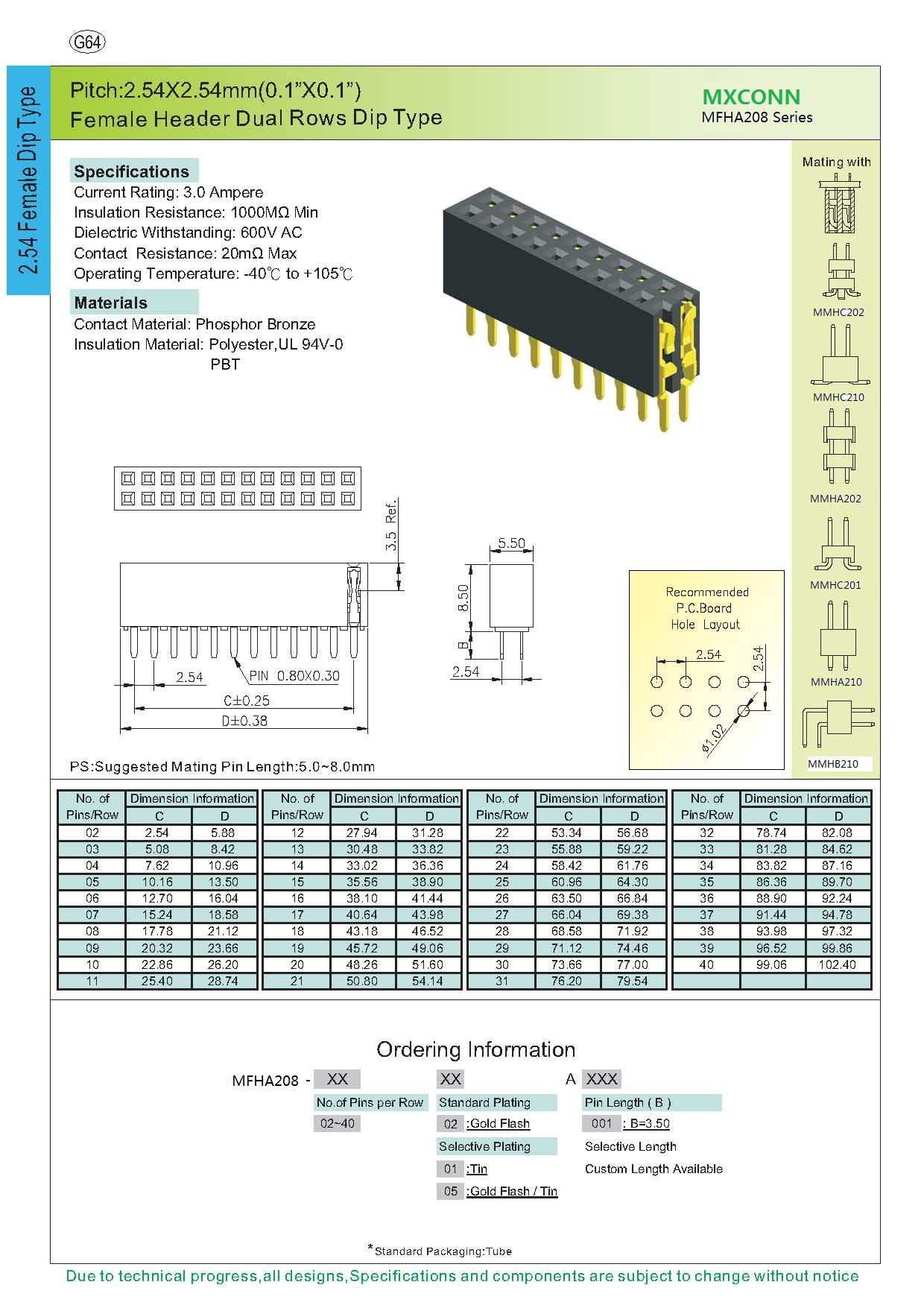 ·Pitch:2.54mm