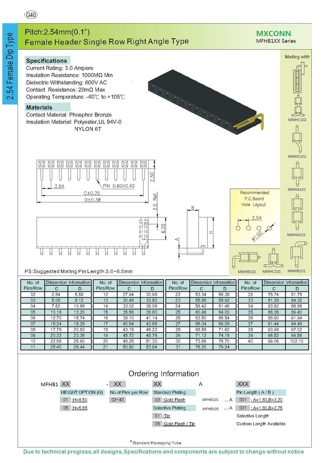·Pitch:2.54mm