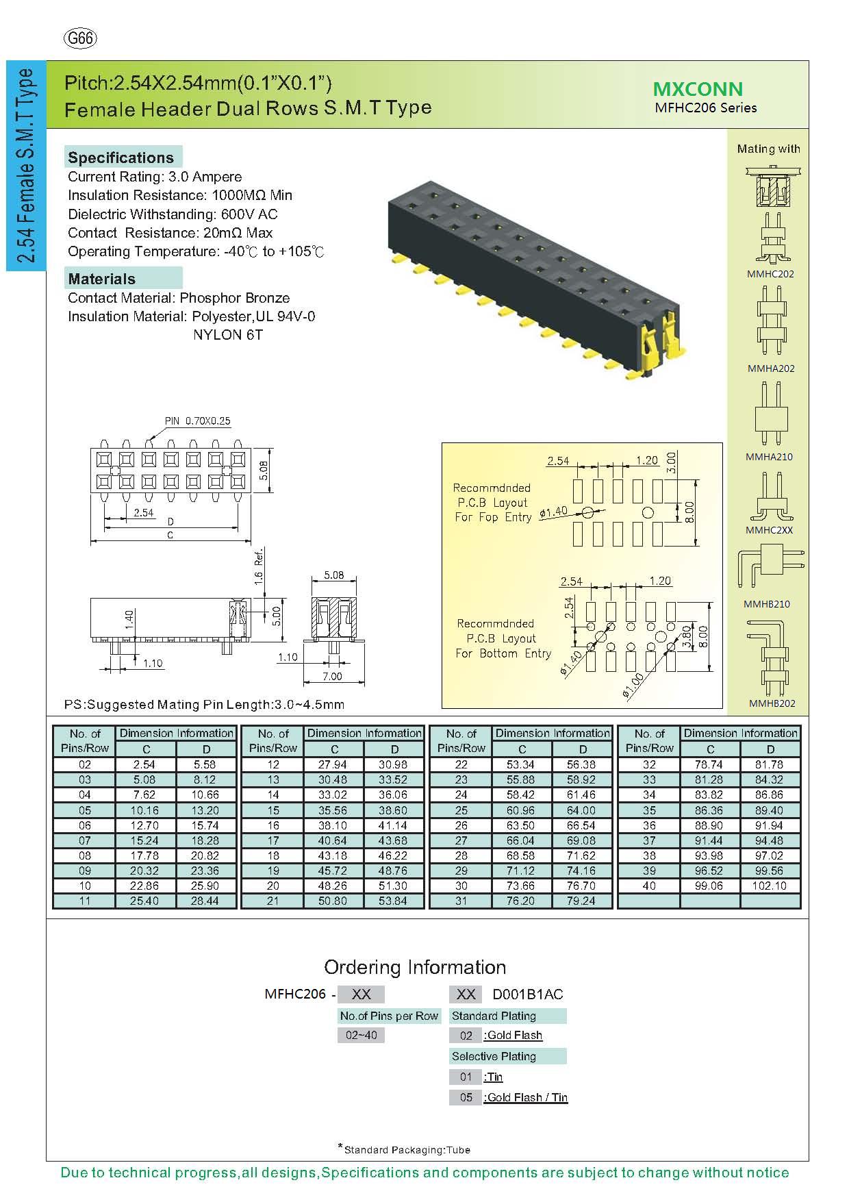 ·Pitch:2.54mm